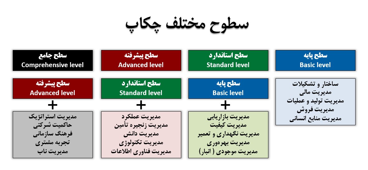 چکاپ سازمانی در ۴ سطح طراحی شده است و قابل انجام است که بستگی به نظر کارفرما دارد: